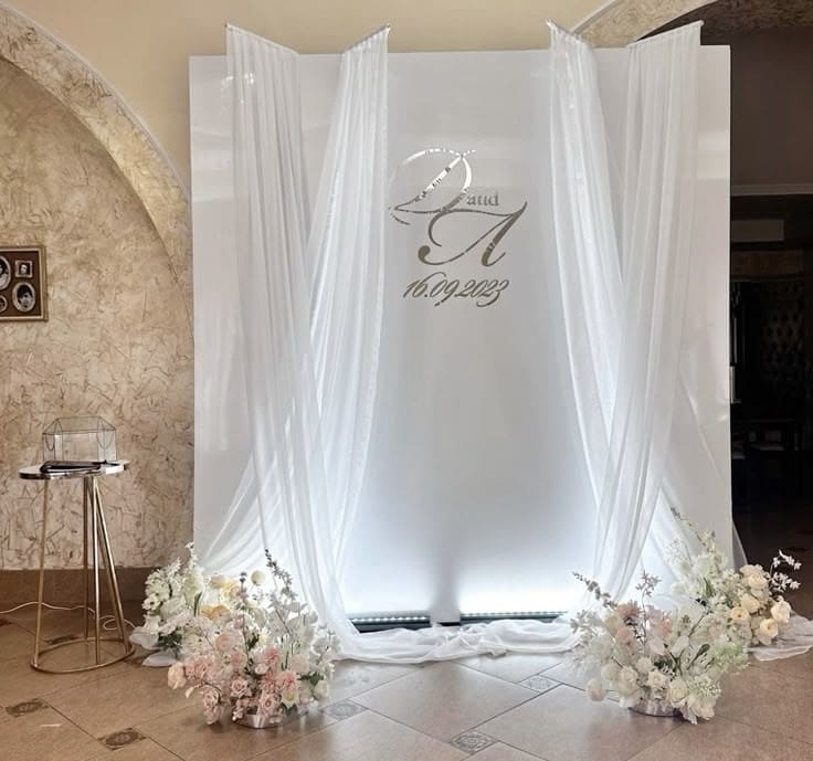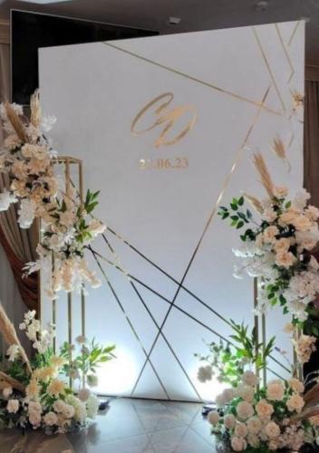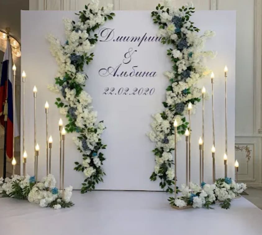 - Элементы фотозоны могут изменяться (по Вашему желанию можно добавить высокие подсвечники, колонны с флористикой, металлические стойки с флористикой, фотографии), стоимость будет зависеть от выбора дополнительных эллементов