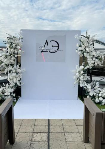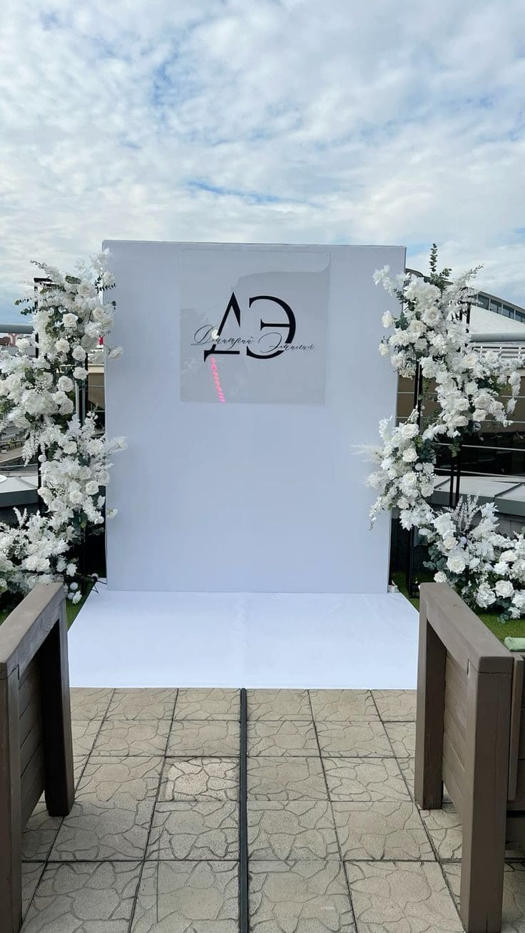 - Фотозона на выбор (классическая фотозона с тканевым фоном, фотозона из баннерных конструкций)