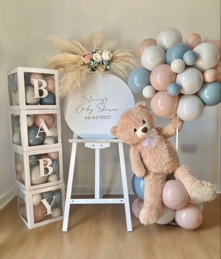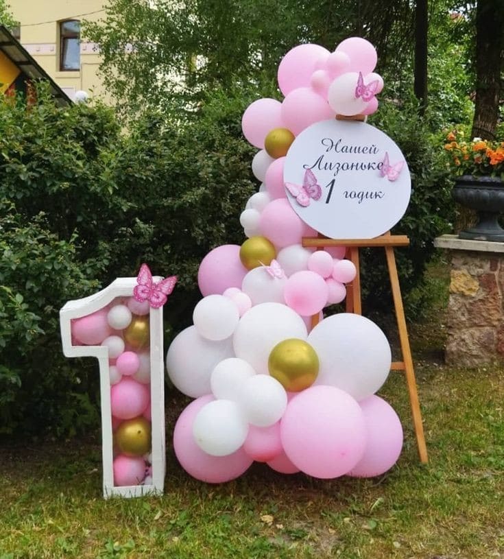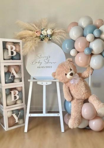 - дополнение на выбор (кубики" BABY", с надписью и шариками внутри, цифра с аэромозайкой, мишка плюшевый)