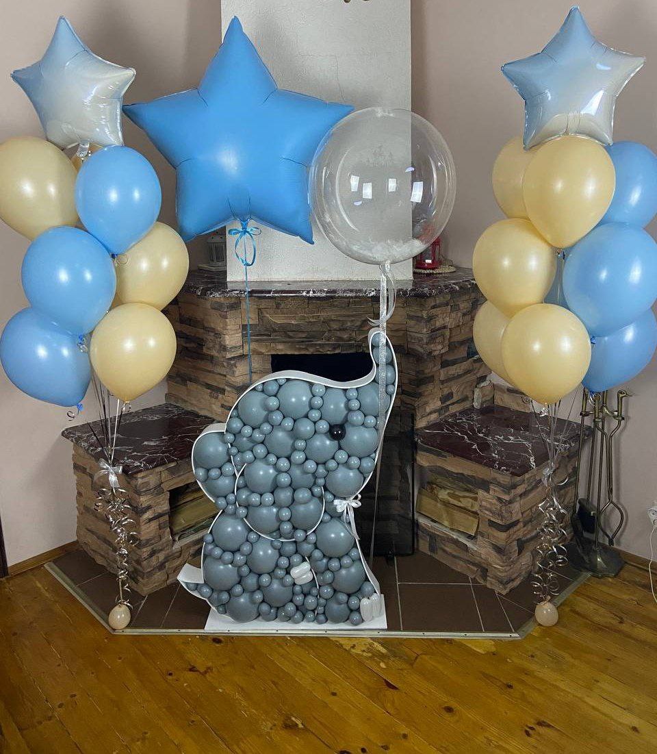 - 2 фонтана состоящие из 9 латексных шариков и фольгированной звёздочки 42 см